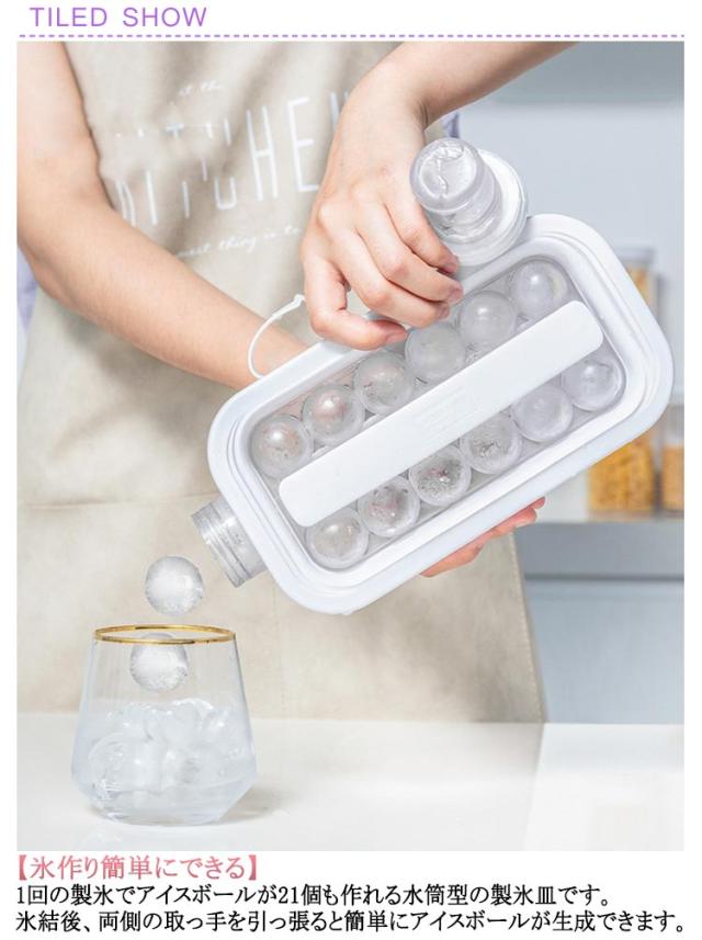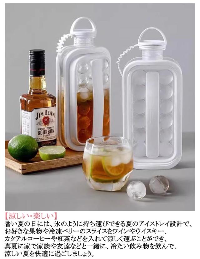 | 2点セット!製氷器/水筒両用 アイスボール 【氷作り簡単にできる】:1回の製氷でアイスボールが21個も作れる水筒型の製氷皿です。氷結後、両側の取っ手を引っ張ると簡単にアイスボールが生成できます。 【安全性・耐久性】:安心できる食品用tritan、やわらかい食品用tritanで、冷えても硬くならず、簡単にアイスボールが取り出せます。丈夫な上、耐久性も厳密性も抜群、水が漏れることもなく、繰り返し利用できます。 【こぼれ・滑りにくい】:製氷皿の口が1つのため、氷がこぼれにくい構造です。 取っ手は柔軟なシリカゲル素材で滑りにくいです。 【涼しい・楽しい】:暑い夏の日には、氷のように持ち運びできる夏のアイストレイ設計で、お好きな果物や冷凍ベリーのスライスをワインやウイスキー、カクテルコーヒーや紅茶などを入れて涼しく運ぶことができ、真夏に家で家族や友達などと一緒に、冷たい飲み物を飲んで、涼しい夏を快適に過ごしましょう。 | |