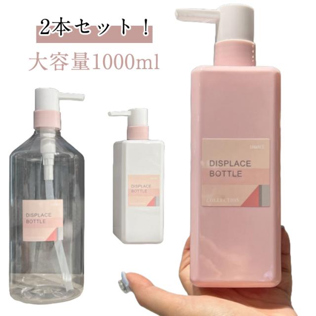 2本セット!シャンプーボトル 詰め替え容器 1000ml ソープディスペンサー 大容量 詰め替え ボトル 透明 ソープボトル シャンプー おしゃれ 業務用 詰め替え用ボトル 容器 クリア 中身 見える リンス ボディーソープ コンディショナー