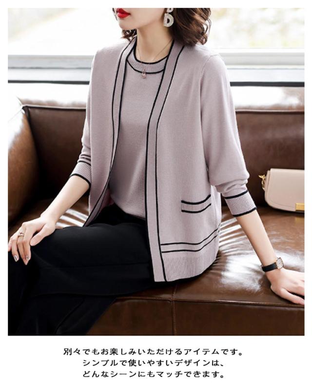 半袖 ニットトップス ニットカーディガン 2点セット レディース 春 秋冬 ニットカーデ ニット セーター クルーネック ニットプルオーバー 薄手 パイピング おしゃれ 洋服 羽織り 婦人 ミセス 40代 50代 60代 70代 80代 秋物 きれいめ 母の日 敬老の日 プレゼント ギフト