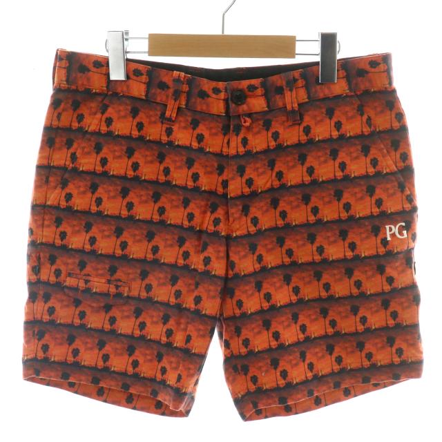 【中古】パーリーゲイツ ショートパンツ ハーフパンツ ショーツ 半ズボン 夕焼け柄 総柄 ロゴ刺繍 4 L オレンジ