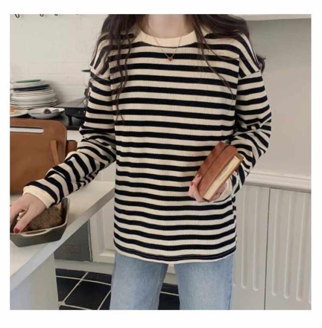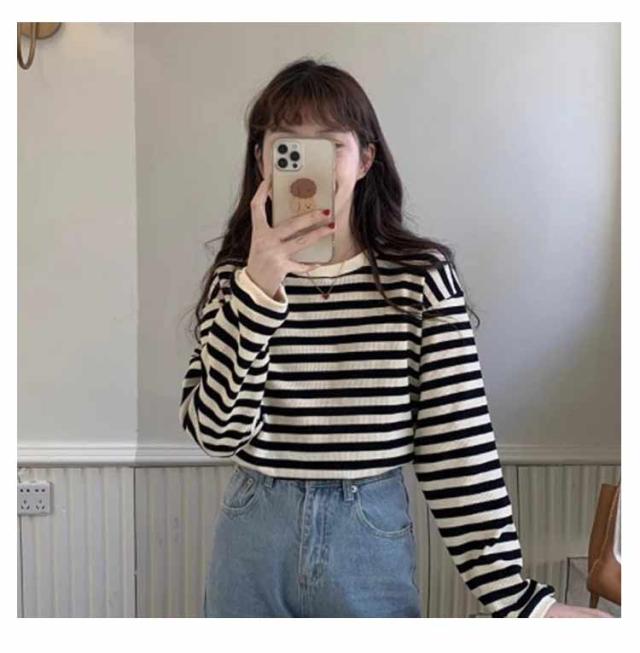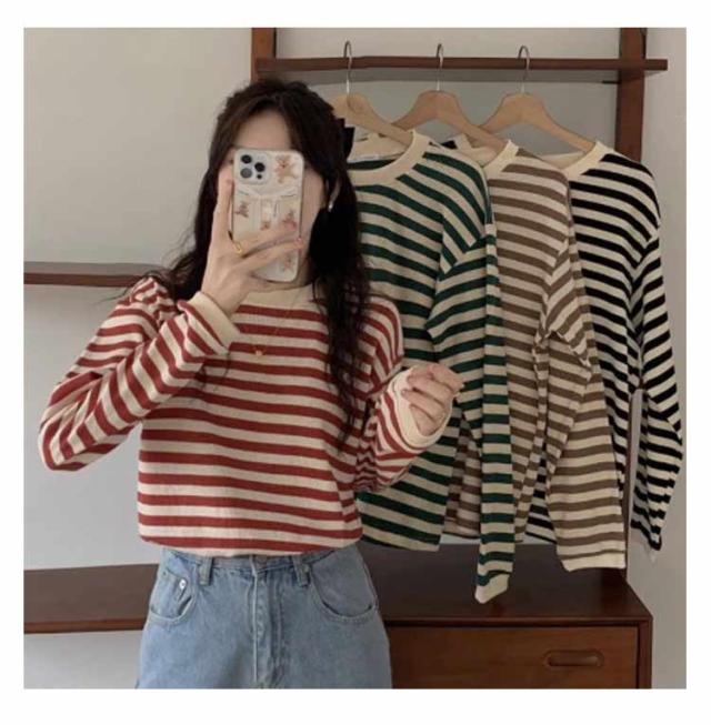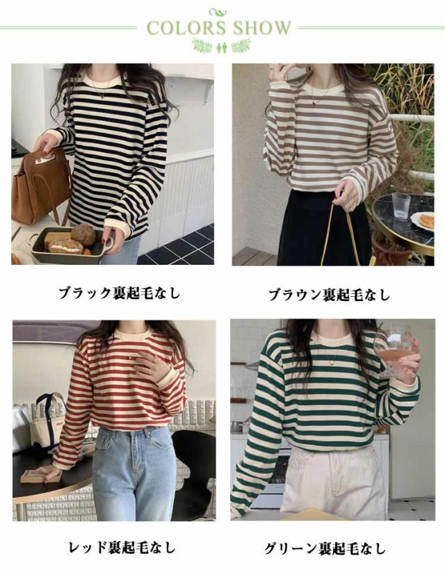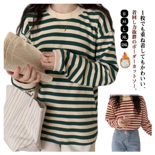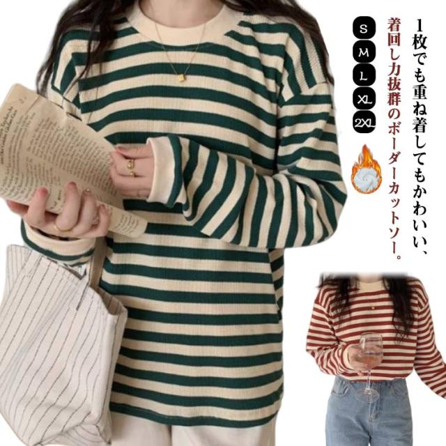 パイピング ボーダー カットソー レディース ボーダーロングTシャツ ラウンドネック トップス 長袖 裏起毛 裏起毛なし レディース ロンt カジュアル ナチュラル Tシャツ インナー ゆったり きれいめ 体型カバー 春 秋 冬 薄手 シンプル 大きいサイズ 送料無料