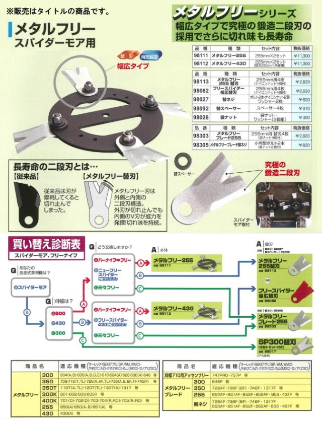 アイウッド 98303 替刃のみ メタルフリーブレード255 スパイダーモア用 替刃4枚+ナイロンナット4個 IWOOD ネコポス可 ’