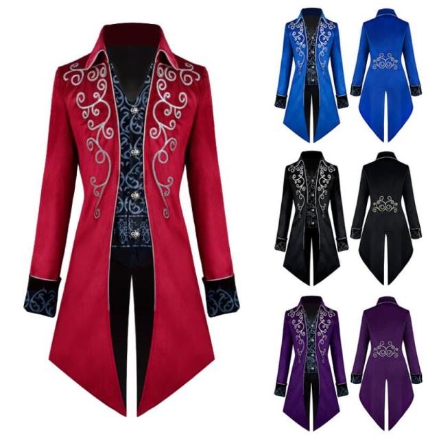 メンズ燕尾服風 ステージ衣装 マジシャン 魔術師 マジック ハロウィン クリスマスコスプレ衣装 司会者 舞台演出服 男性用礼服 長袖テーラードジャケット レトロコート