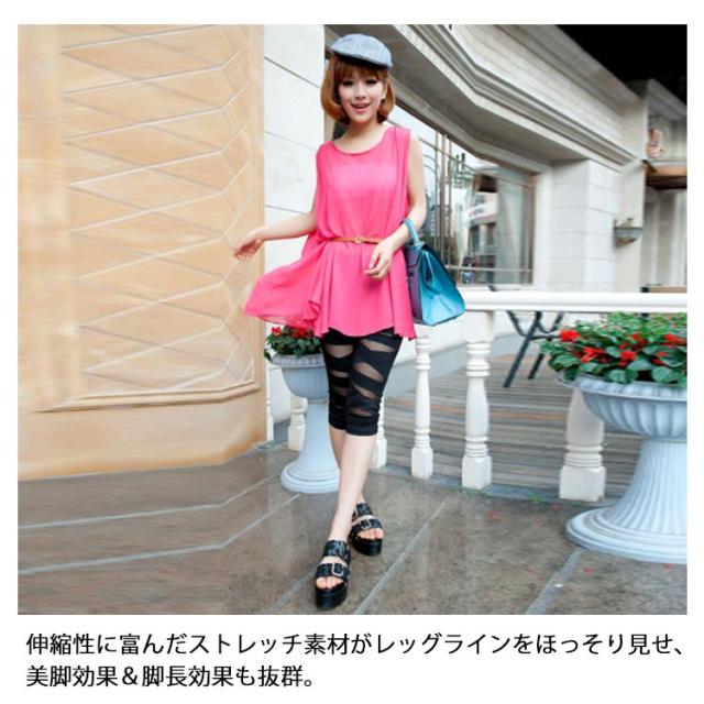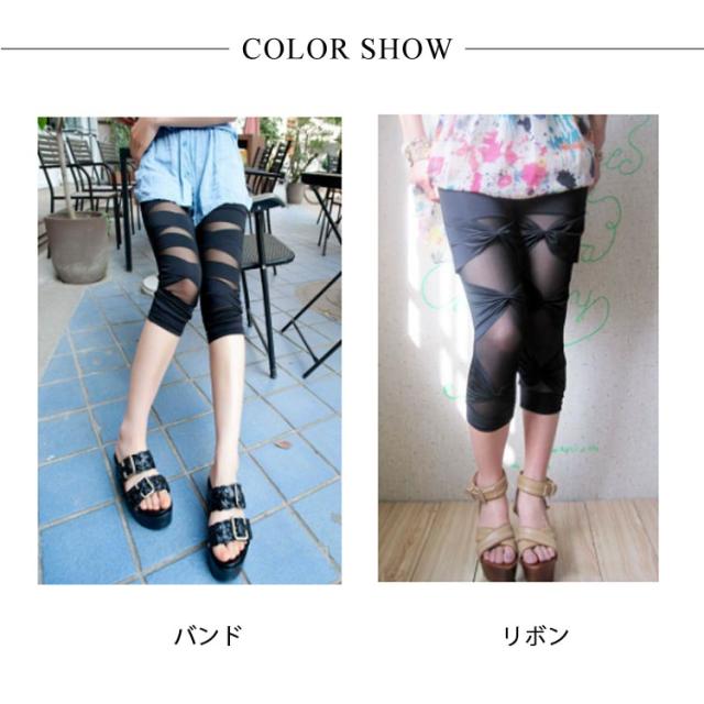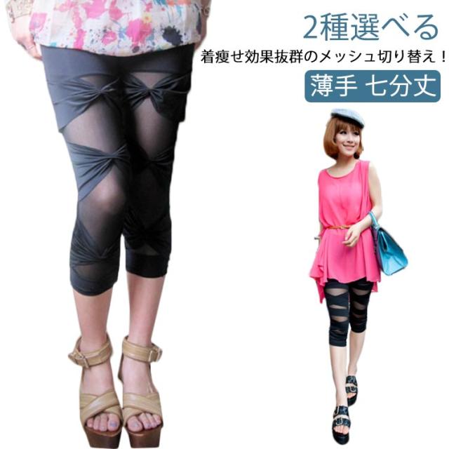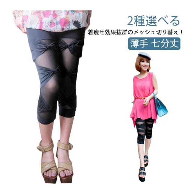 2タイプ!レギンス 薄手 ストレッチパンツ 縛る 春 2タイプ!レギンス レギンスパンツ 夏 レディース 七分丈 クロップドパンツ シースルー パッチワーク サブリナパンツ 大人 美脚