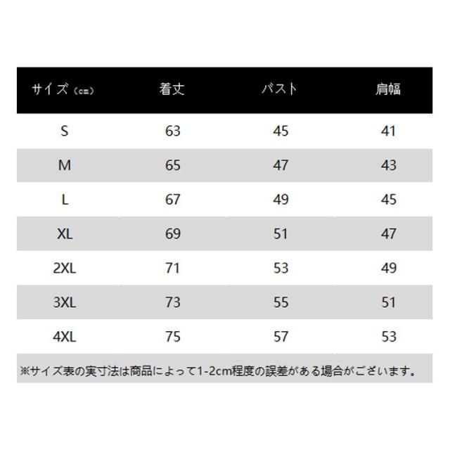 | サイズ | S M L XL 2XL 3XL 4XL |