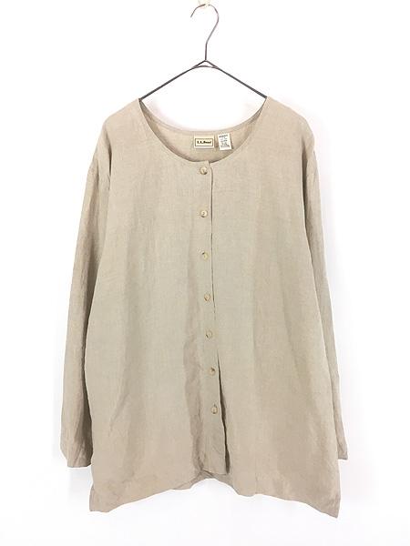 レディース 古着 00s LL Bean 無地 ソリッド ノーカラー 100%リネン シャツ ジャケット L
