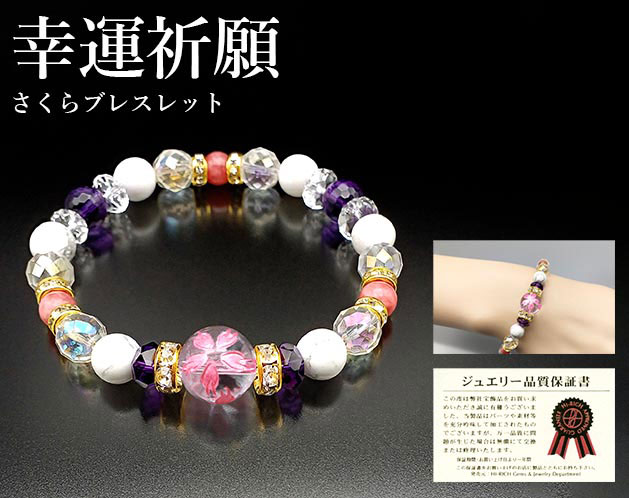 幸運祈願・さくらブレスレット パワーストーン ブレスレット レディース 可愛い かわいい 癒し ストレス緩和 招福 天然石 天然石ブレスレット 幸運 水晶 ギフト 贈り物 母の日 敬老の日 プレゼント