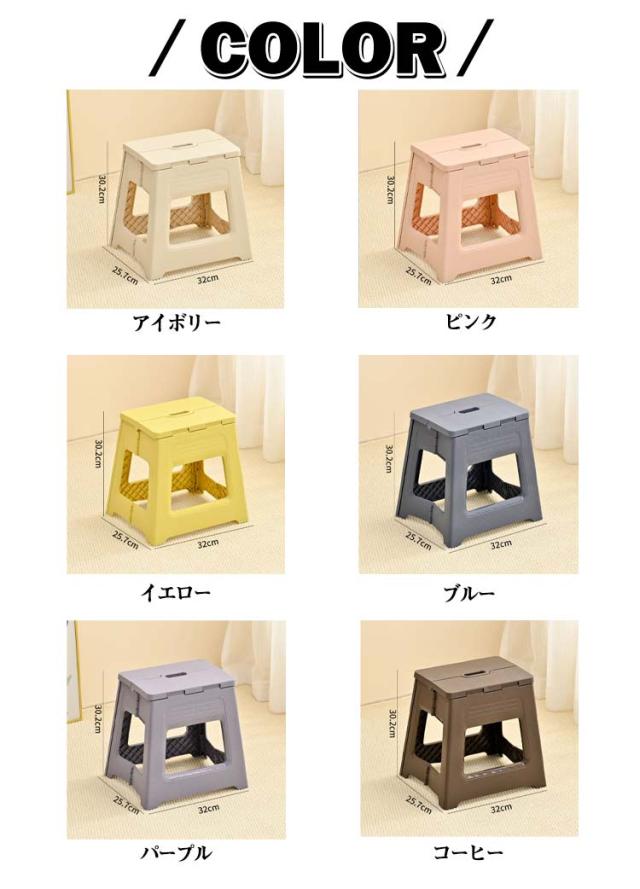 | 【2個セット】 折りたたみ式の踏み台スツール 耐荷重は150kgで、キッチンやトイレ、洗車、掃除、アウトドアなど幅広く活躍。 かわいいデザインでおしゃれなインテリアにも馴染み、使わない時はコンパクトに収納可能です。 | |