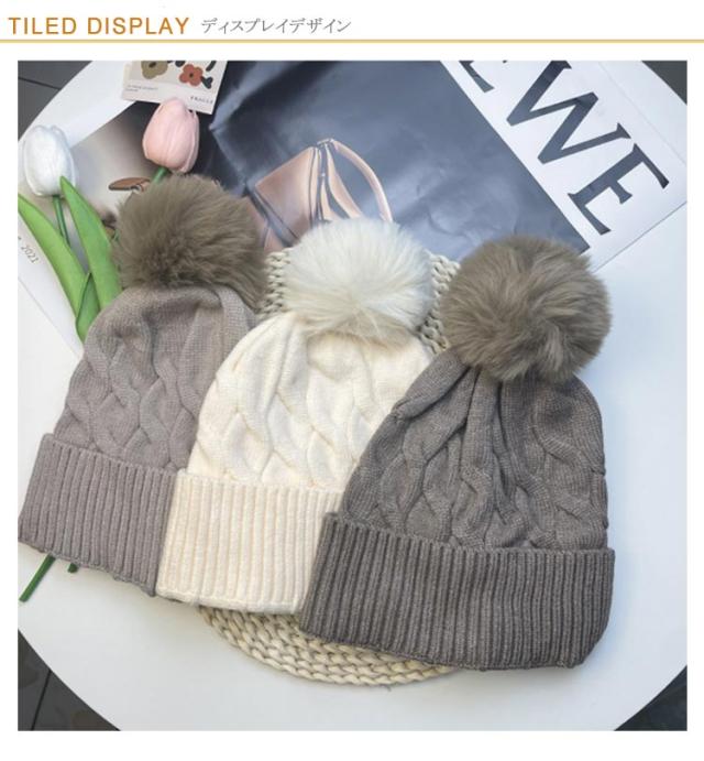 ニット帽 レディース 秋冬 ニット帽 スノボ 帽子 スキー ボンボンニット帽 防寒 ケーブル編 ふわふわポンポン付フェイクファーニット帽 メンズ レディース ニット帽 秋 冬 ブラウン ブラック ベージュ コーヒー