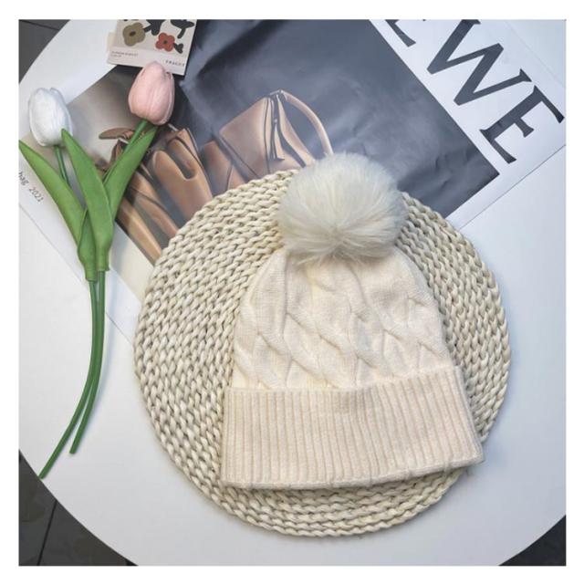 | 4colors! ケーブル編ボンボンニット帽 ポンポン取り外し可能 | |