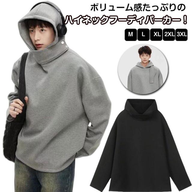 ボリュームネックパーカー メンズ ドロストオーバーサイズ パーカー 防風ネックガード ボリュームネックパーカー 春秋 秋 春 メンズ パーカー ハイネックプルオーバー プルパーカー メンズファッション トップス プルオーバー カジュアル 長袖 秋冬