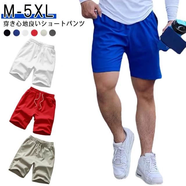 メンズ 膝上パンツ 半ズボン スポーツ アイスシルク ハーフパンツ 夏 短め ショートパンツ 短パン 薄手 メンズハーフパンツ ハーフパンツ 通気性 夏服 海パン レッド 無地 夏物 涼しい ブラック ブルー ホワイト ショートパンツ ライトグレー ダークグレー 涼しい