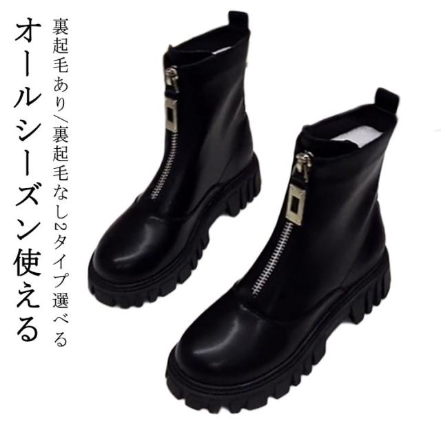 2タイプ選べる 靴 フェイクレザー フロントジップブーツ 裏起毛あり フロントジップブーツ 裏起毛なし レディース 無地 防水 靴 ブーツ シューズ ショート丈 ショートブーツ 革靴 アンクル丈 ジップ フロントジップ 履きやすい 厚底 春 秋