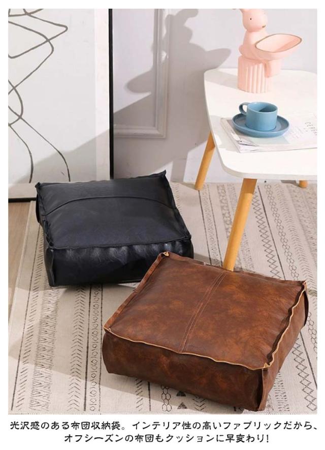 布団収納 クッションになる コンパクト 布団収納袋 座クッション ソファ クッション ふとん 布団収納袋 座布団 【2点セット】 収納袋 スクエア型 服 毛布 無地 収納 布団収納ケース ケース コンパクト おしゃれ ブラウン