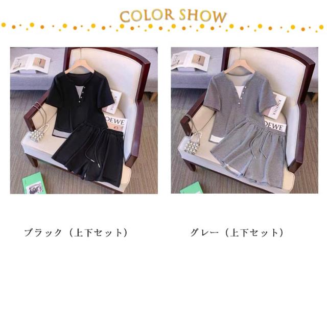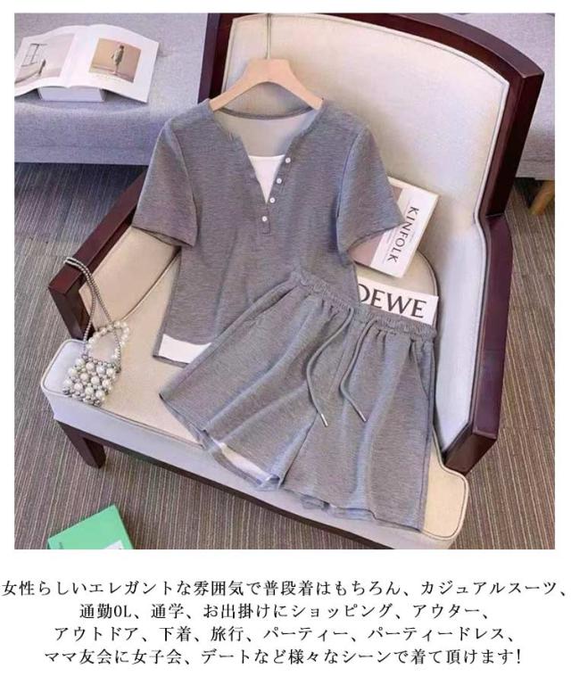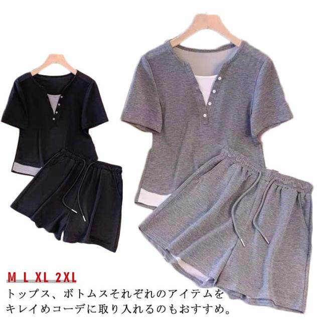 半袖 レディース 2点セット 春 ブラウス スウェット オフィス ジャージ 夏服 春服 薄手 セットアップ ショートパンツ トップス 可愛い かわいい シンプル ボトムス 上下セット 通気 上下 夏 体型カバー 軽い 無地 おしゃれ 20代 30代 40代 カジュアル 日常着 通勤