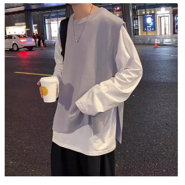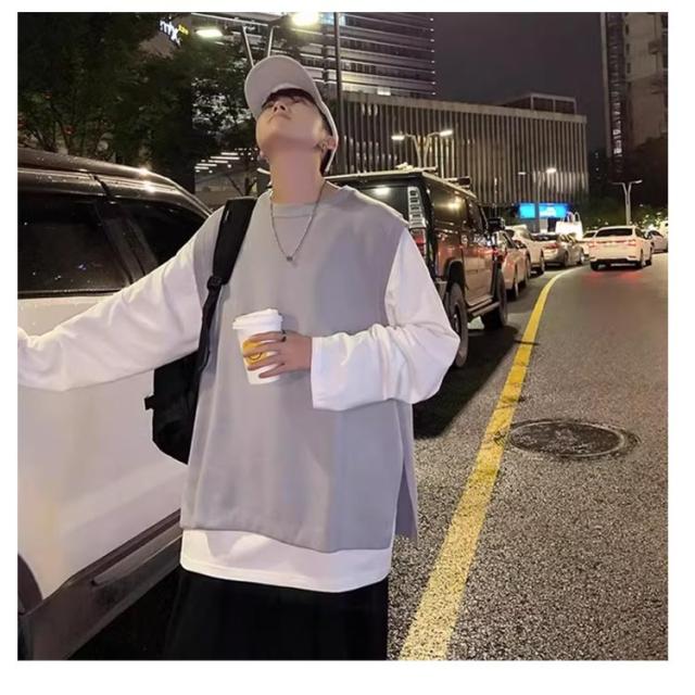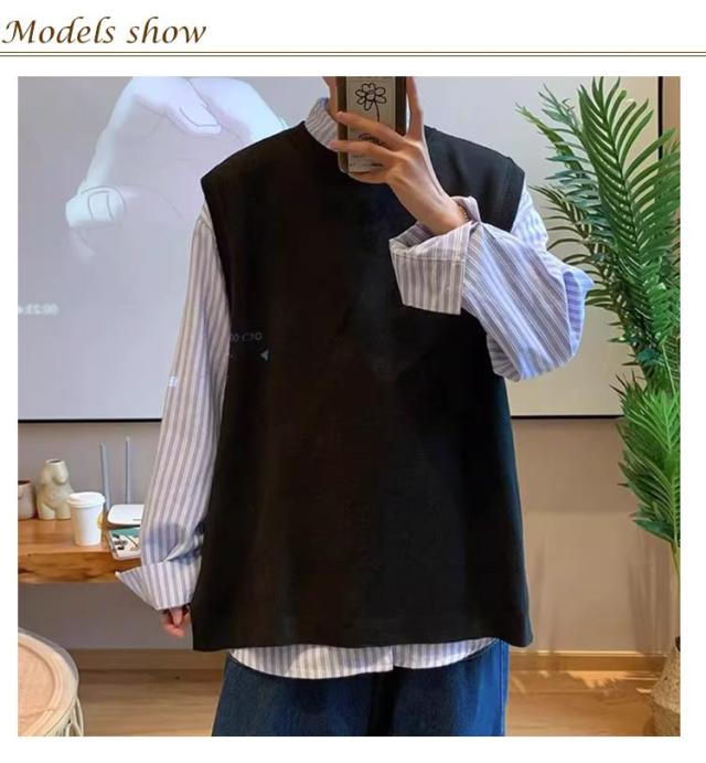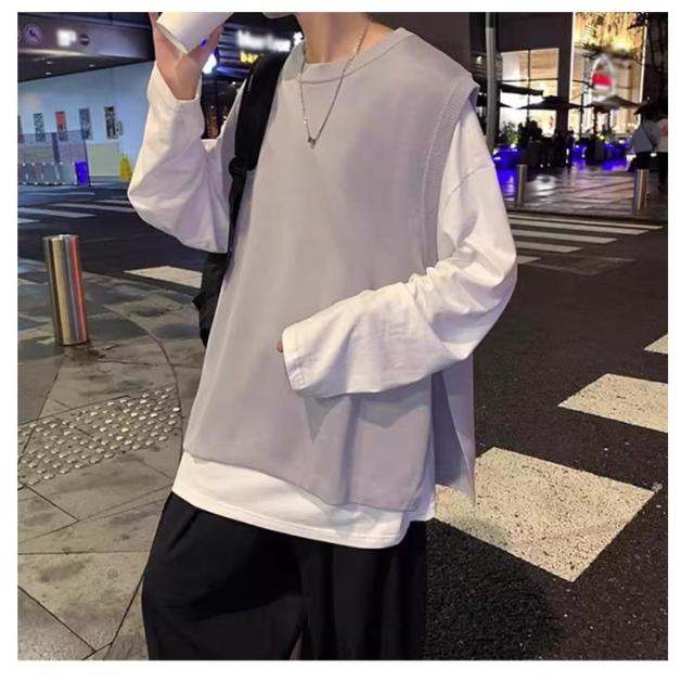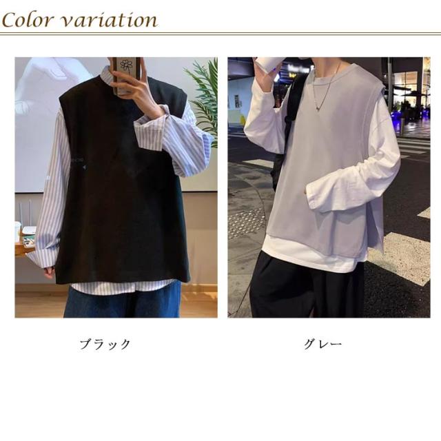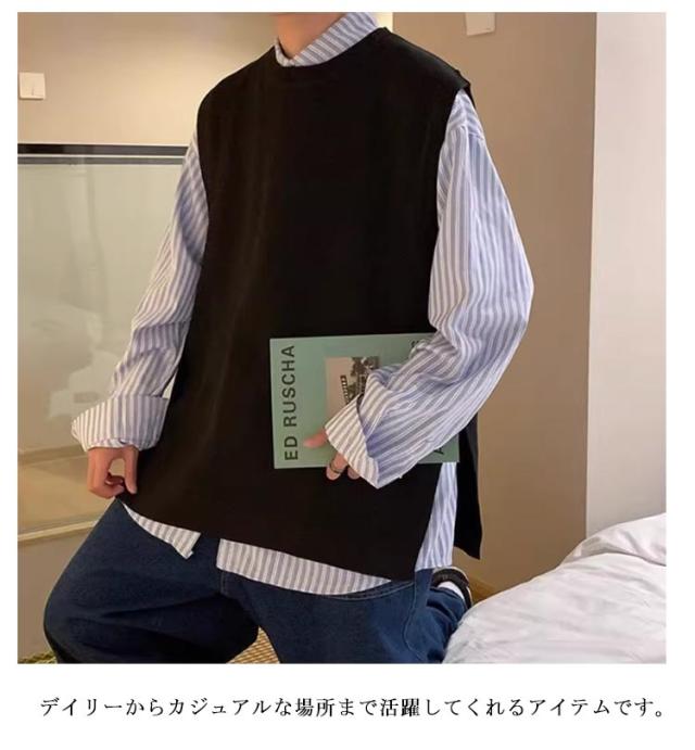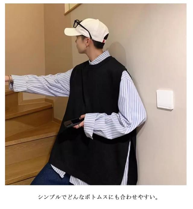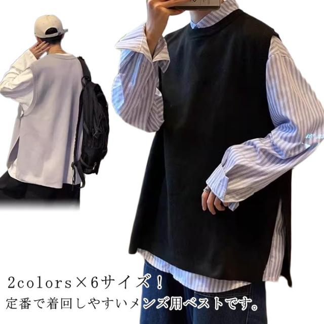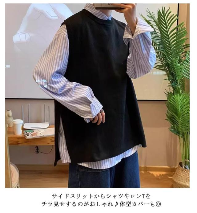 ベスト メンズ ブラック カジュアル グルーネック サイドスリット ニットベスト 無地 レイヤード スリット カジュアル ニット トップス シンプル プルオーバー 重ね着 おしゃれ 春 秋 ニットベスト グレー