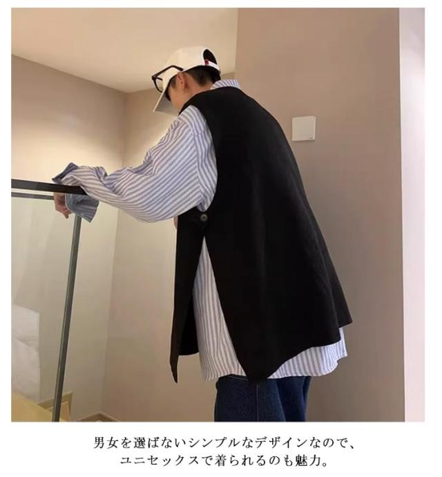 | 2colors×6サイズ! 定番で着回しやすいメンズ用ベストです。 サイドスリットからシャツやロンTをチラ見せするのがおしゃれ♪体型カバーも◎ シンプルでどんなボトムスにも合わせやすい。 デイリーからカジュアルな場所まで活躍してくれるアイテムです。 男女を選ばないシンプルなデザインなので、ユニセックスで着られるのも魅力。 | |