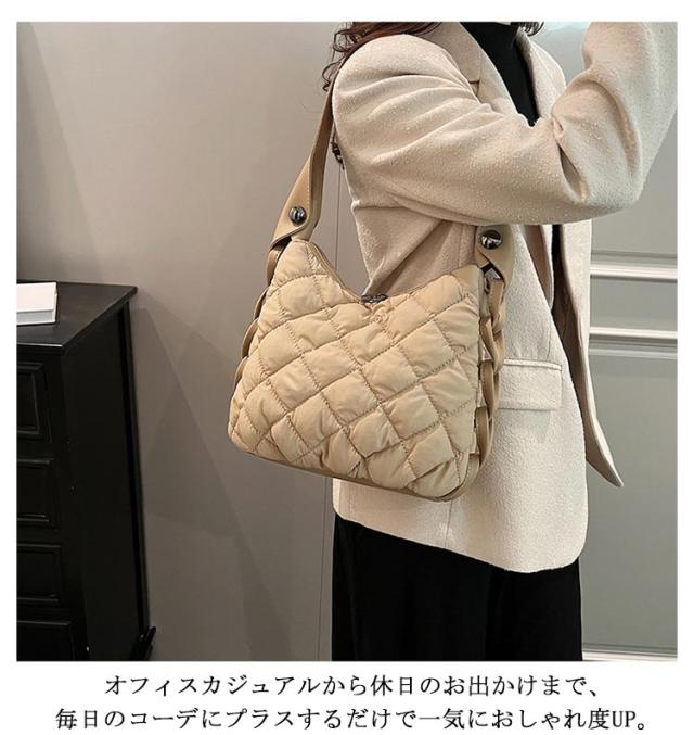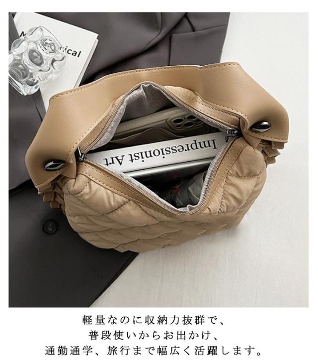 サイド編み 韓国ファッション 肩掛けバッグ 旅行 軽量 トートバッグ ナイロン 小さめ キルティング 軽い トートバッグ 通勤 ナイロンバッグ きれいめ レディース キルトバッグ 中綿 おしゃれ 大容量 布