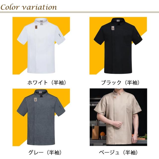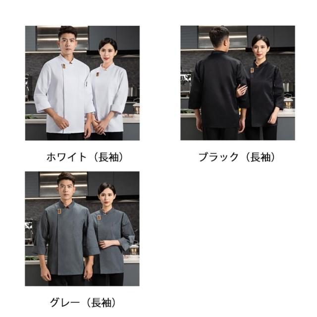 | 男女兼用のコックコート 長袖 半袖 スタンドカラーとシングルの前合わせが洗練された印象を醸す 洗って干すだけの楽々メンテナンス。 毎日洗える!業務用洗濯OK! | |