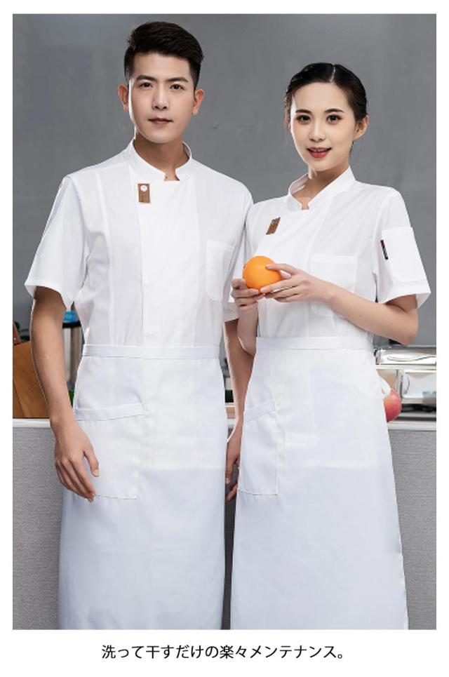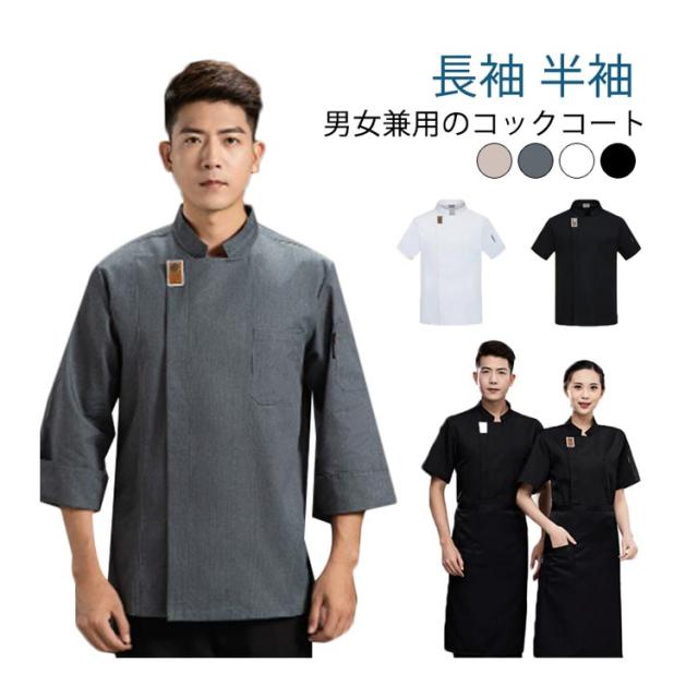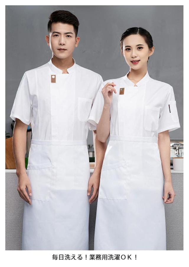 | 男女兼用のコックコート 長袖 半袖 スタンドカラーとシングルの前合わせが洗練された印象を醸す 洗って干すだけの楽々メンテナンス。 毎日洗える!業務用洗濯OK! | |