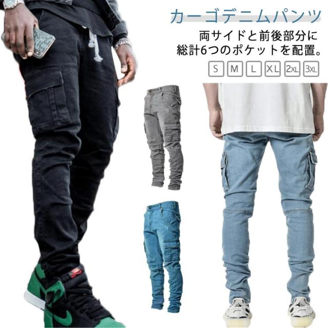 カーゴパンツ ダメージ ジーンズ 細身 デニムパンツ ストレッチ スキニーデニム スキニー ジーパン 大きいサイズ メンズ スリム タイト 作業ズボン 作業着 長ズボン 伸縮性 パンツ ワークデニム ジョガーパンツ テーパード ロングパンツ 春 夏