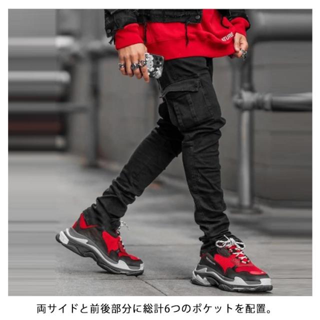 | カーゴデニムパンツ S〜3XL 程よい伸縮性のある生地を使用し、座ったり、足を曲げたりするのも楽にできます。 脚のラインにフィットさせることで脚長効果が期待できる、細身のスキニーデニム 両サイドと前後部分に総計6つのポケットを配置。 デザイン性に機能性どちらも両立!バランスの取れたスマートな佇まいを演出。 | |