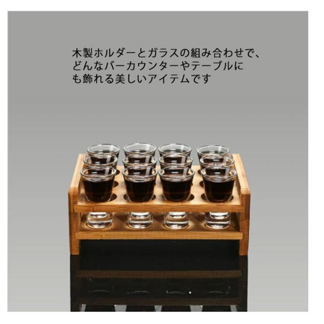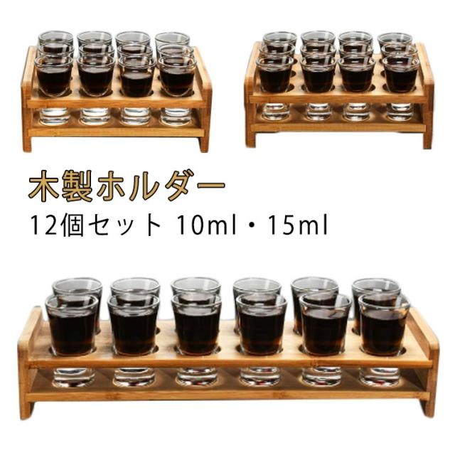 | 木製ホルダー 12個セット 10ml・15ml 12本のショットグラスセットで、一度に最大12名様までご利用いただけます。 木製ホルダーとガラスの組み合わせで、どんなバーカウンターやテーブルにも飾れる美しいアイテムです 無害で鉛フリーのガラス、美しい超透明ガラス、ヘビーデューティー用の厚みのあるベースで作られた12ショットグラス | |