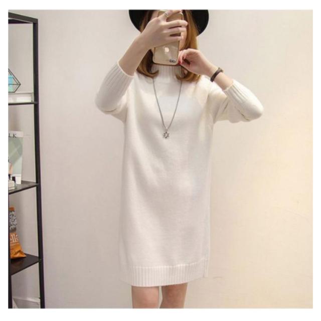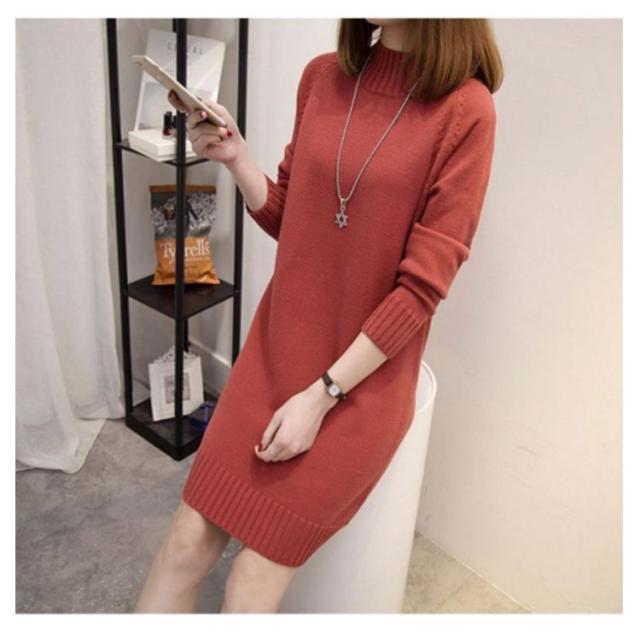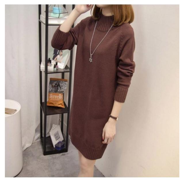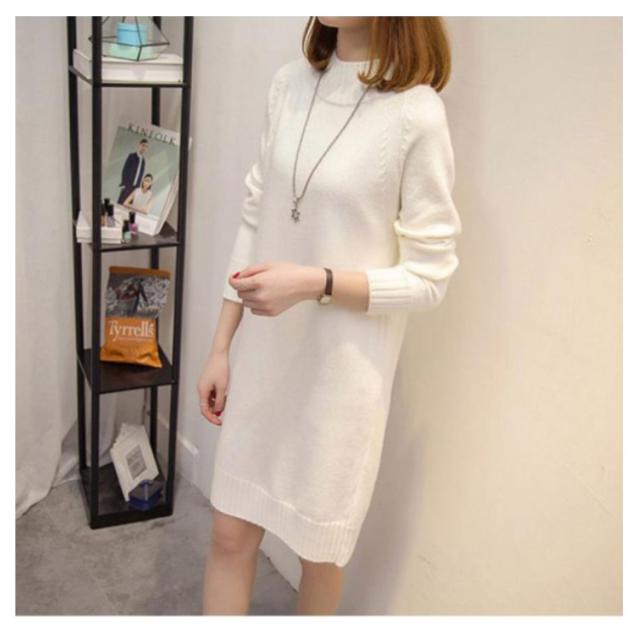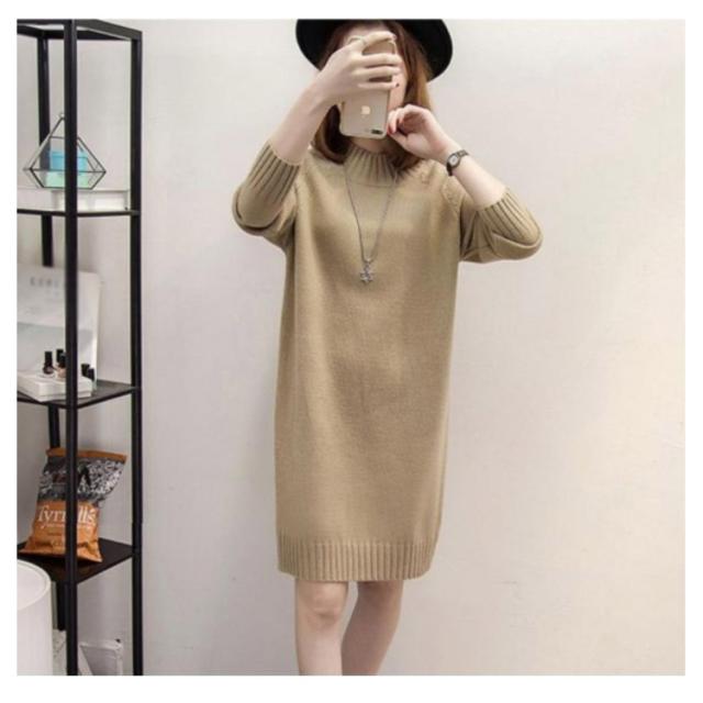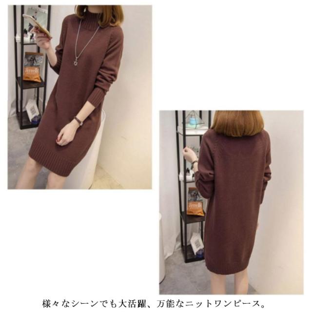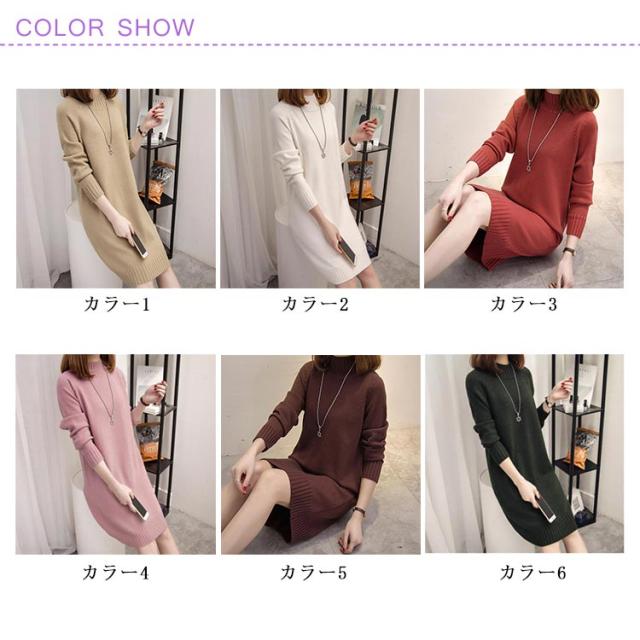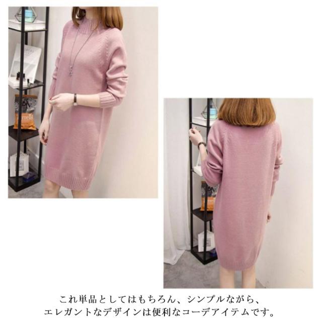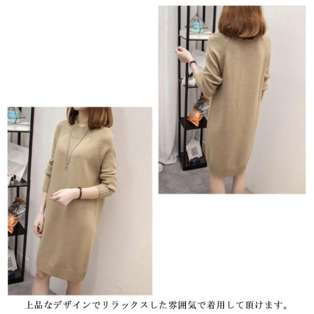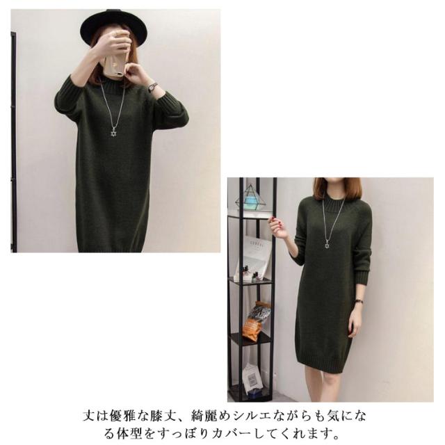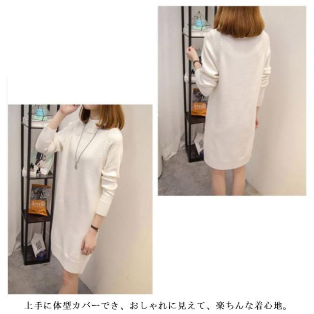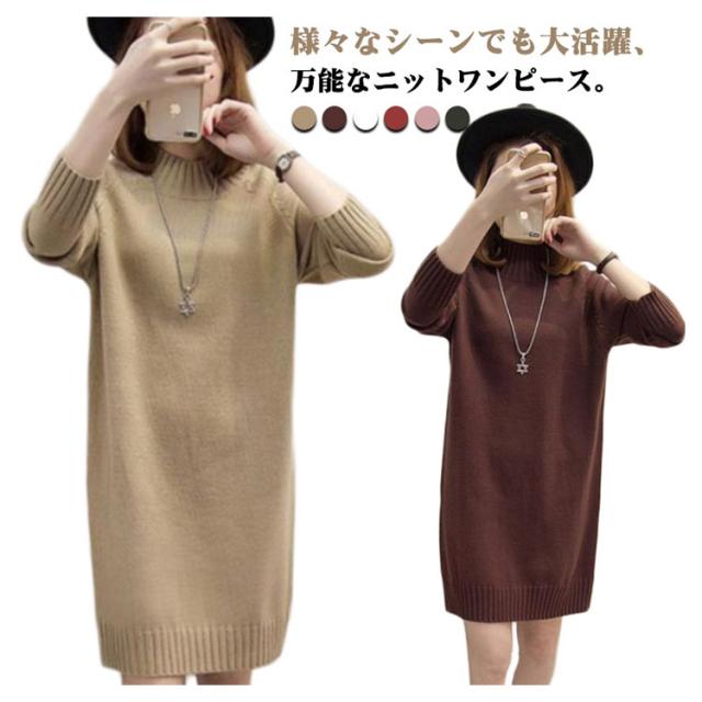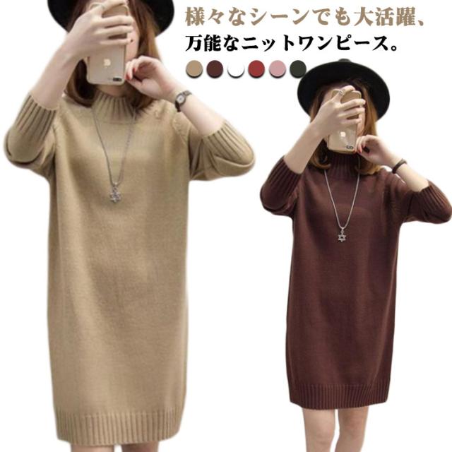 秋 ワンピース ニット モックネック 着痩せ セーター フェミニン チュニック プルオーバー ロングセーター 長袖 春 きれいめ M S モックネック L XL 2XL