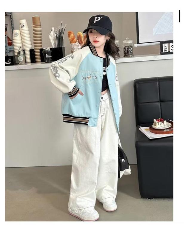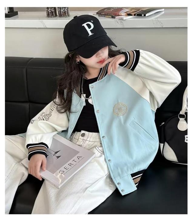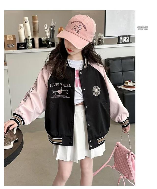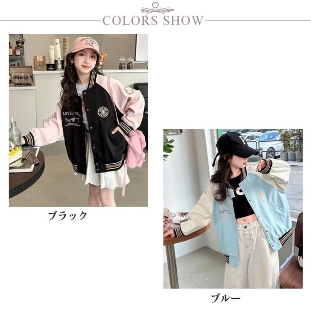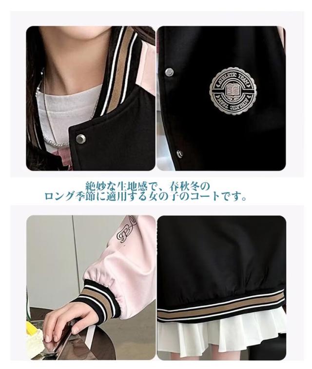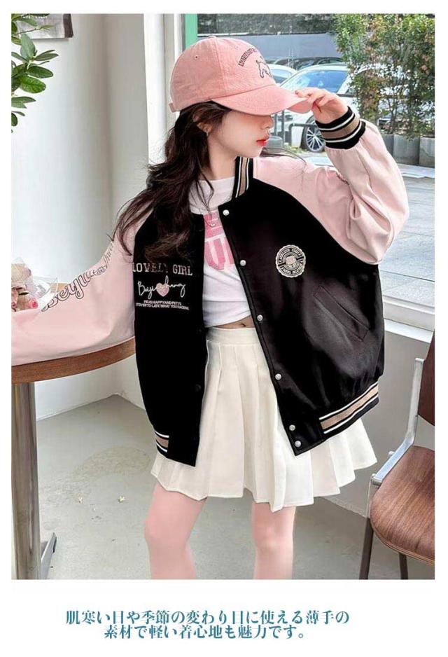 女の子 長袖 ブルゾン コート スプリングコート 子供服 春秋 ジャケット キッズ 英語 通気性抜群 可愛い 上着 スタジャン シンプル 可愛い 野球服 スウェット 肌触り 通園 通学