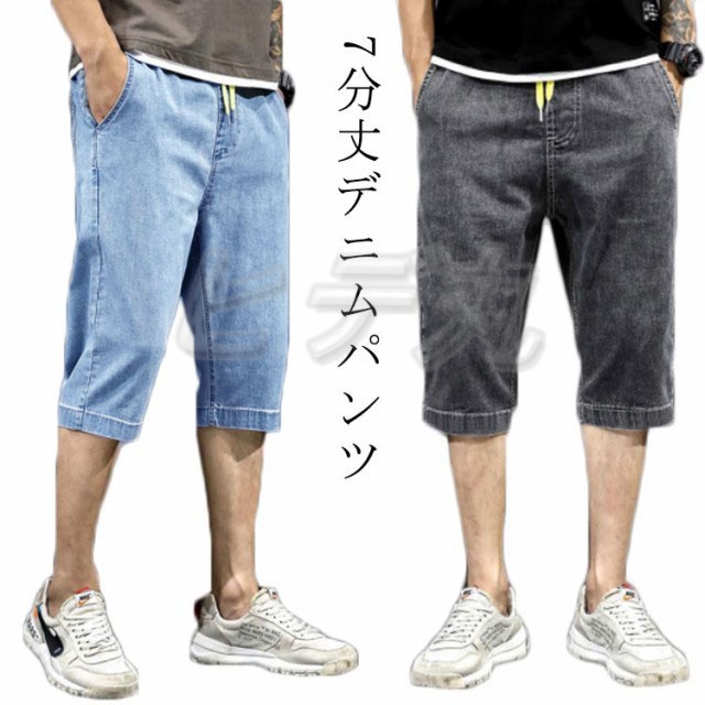 ジーンズ デニムパンツ メンズ 七分丈 半パン ゆったり サルエル ストレッチ 薄手 パンツ 半端丈 7分丈 ジーパン デニムパンツ ストレッチデニム 半ズボン Gパン ストレッチパンツ 伸縮性 夏 大きいサイズ