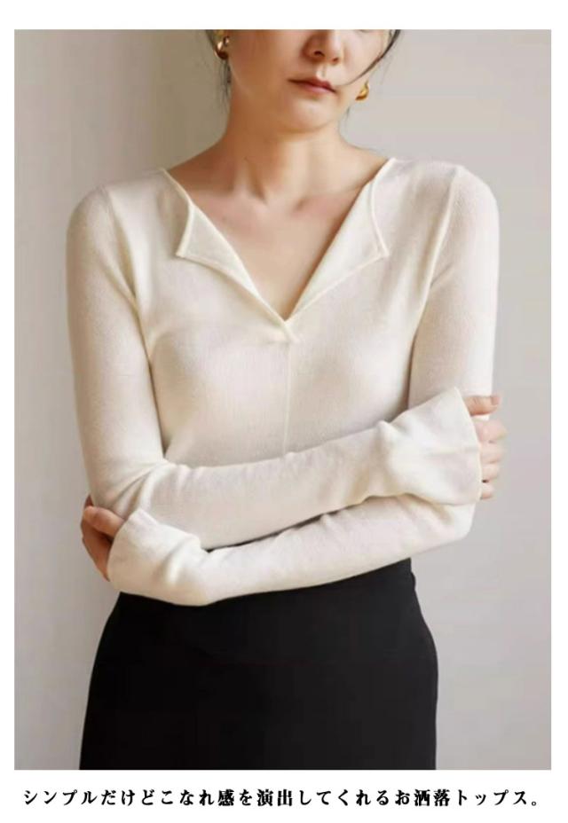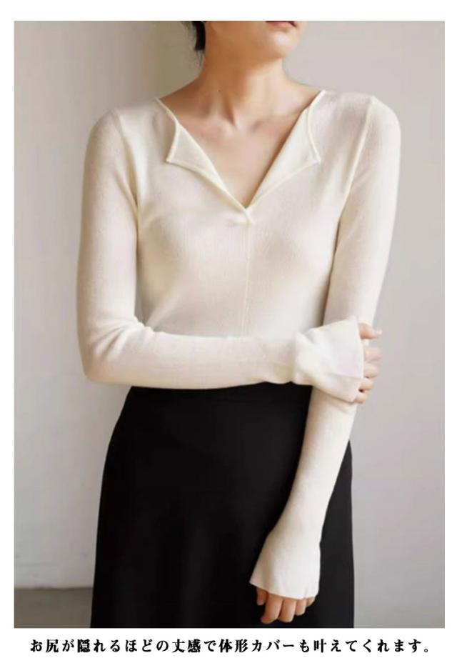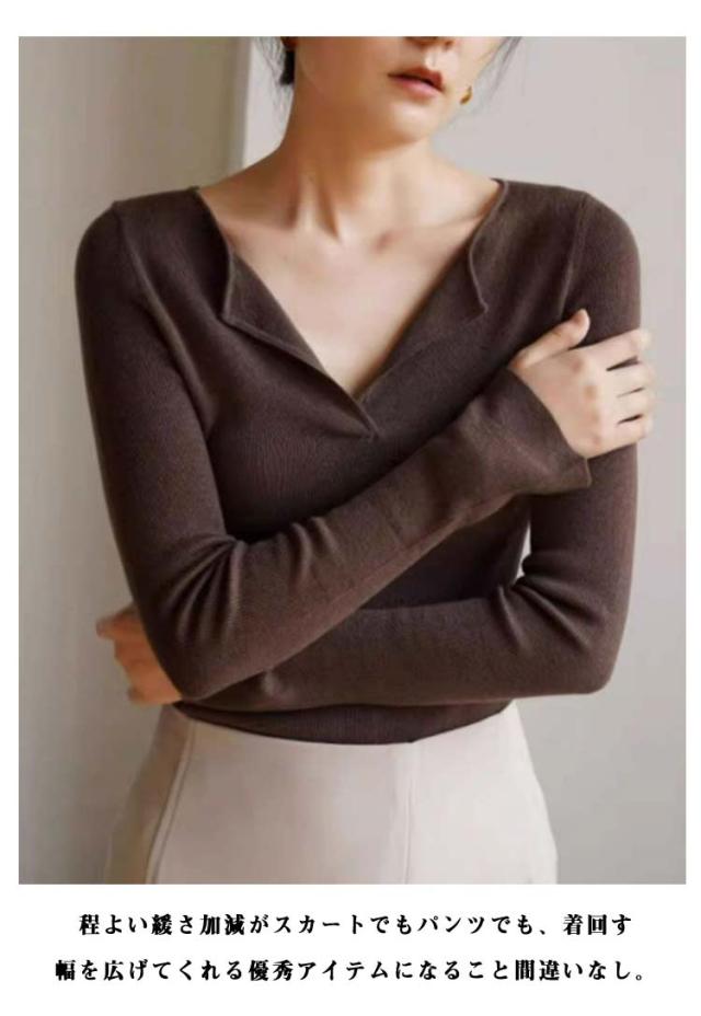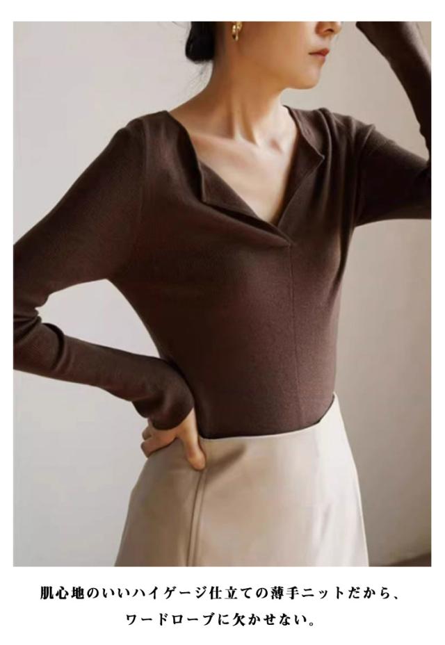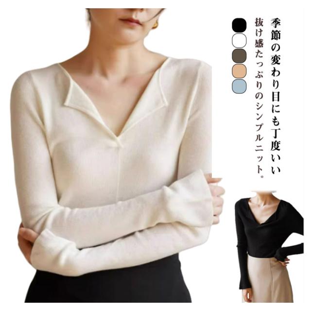 レディース ニット 秋冬 ゆったり ニット トップス 長袖 Tシャツ Vネックニット ニット 着痩せ 鎖骨見せ きれいめ tシャツ おしゃれ 大きいサイズ スーパーストレッチ ニット インナーシャツ 長袖 カットソー 手洗い 秋服 通勤 通学