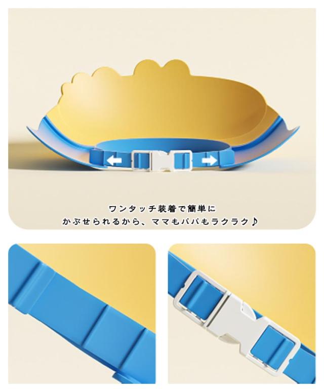 | 選べる19柄!シャンプータイムを楽しく!ベビーシャンプーハット ワンタッチ装着で簡単にかぶせられるから、ママもパパもラクラク♪ 人間工学に基づいてデザインされたバスバイザーで、水が耳、目、口に入るのを防止します。 広いツバが水しぶきをしっかりガード!シャンプーが目に入るのを防ぎます。 頭に触れる部分にはソフトシリコンを採用しているので、締め付け感がなく、ぴったりとフィットします。 やわらか素材でお子さまの頭にやさしくフィット! 【使用方法】 お子様の頭のサイズに合わせて被せるだけ!簡単装着&快適フィットで、お子さまのバスタイムをサポートします。 使い方 1.シャンプーハットを髪の毛の生え際に合わせ、バックルを止めます 2.ツバを上に持ち上げ髪の毛を外側に出します 3.丁度いいキツさにバックルを調節します 4.水が流れ落ちやすいよう、額側を高めに後ろを低めにします。 | |