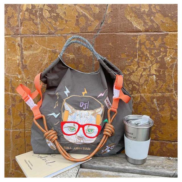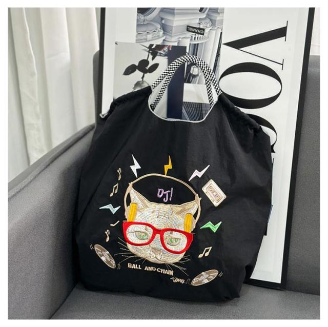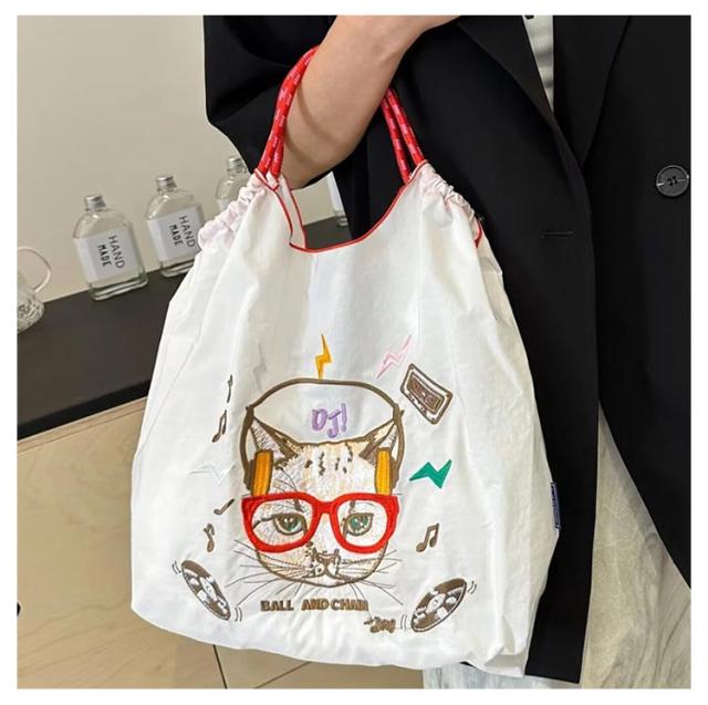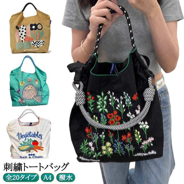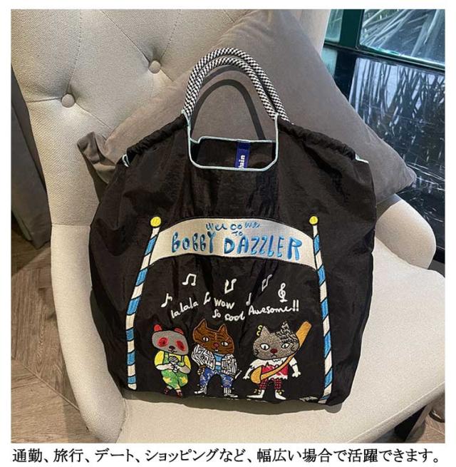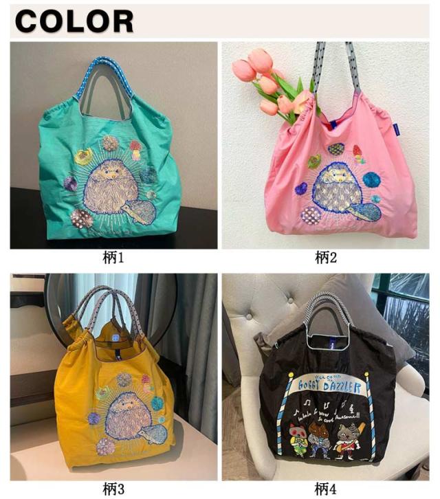 刺繍 刺繍バッグ 刺繍 肩掛け 通勤 ナイロン 軽量 A4 かわいい トートバッグ 動物 猫 花柄 エコバッグ 大きめ 買い物 ショッピングバッグ 手提げバッグ サブバック 折りたたみ アニマル刺繍 トートバック 可愛い 鞄 プレゼント ギフト トートバッグ 送料無料