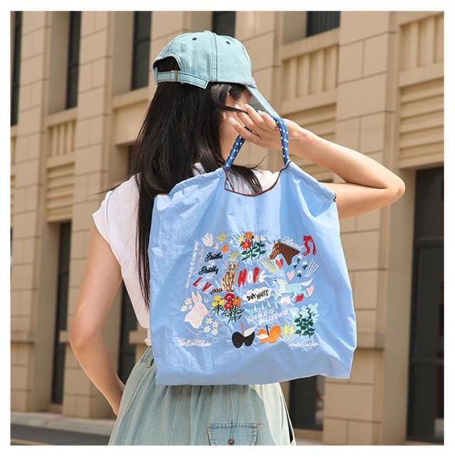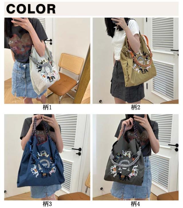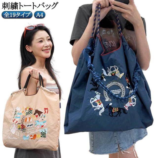 トートバッグ 刺繍 エコバッグ 肩掛け 手提げバッグ A4 軽量 ナイロン かわいい 刺繍バッグ 動物 猫 花柄 刺繍 大きめ 買い物 ショッピングバッグ おしゃれ サブバック 折りたたみ アニマル刺繍 トートバック 可愛い 鞄 プレゼント ギフト 通勤 送料無料