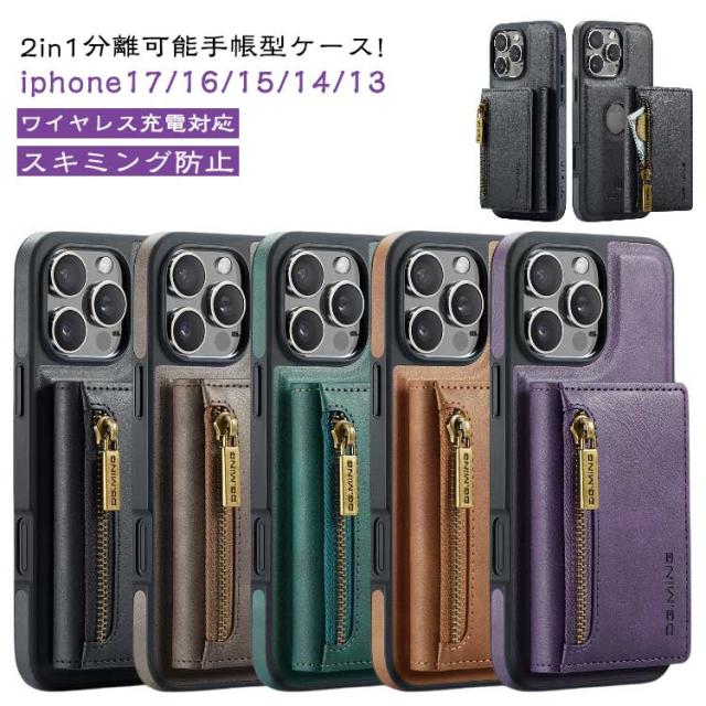 取り外し可 カード収納 カバー iphone17Air iphone17ケース iphone17 2in1 手帳型 MagSafe対応 手帳型ケース スマホケース ケース 耐衝撃 おしゃれ PUレザー iphone17pro iphone17promax 高級 ワイヤレス充電 NFC防止iPhone16 phone16e iphoneケース iphone16pro