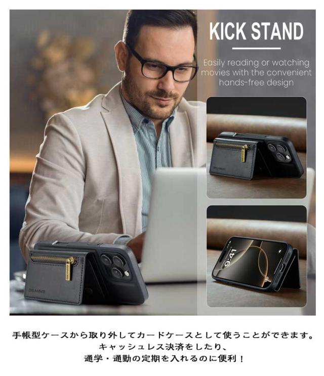 | マグネット式 スキミング防止 ワイヤレス充電対応 2in1分離可能手帳型ケース! iphone17/16/15/14/13 ・ 財布+手帳型ケースとしても、超薄型の背面カバー単体としてもご利用いただける2in 1 のスマホケース!気分や状況に合わせて使い分けられてとでも便利! ・5つのポケット付きのお財布ポーチは、小銭やお札、レシートなど分けて収納することができ便利です。※お札は折りたたんで収納して下さい。 ・手帳型ケースから取り外してカードケースとして使うことができます。キャッシュレス決済をしたり、通学・通勤の定期を入れるのに便利! ・強力マグネットで手帳型と背面カバーがしっかりと固定されるので、落ちたりずれたりする心配はありません。 ・背面カバーに磁性があるので、マグネット式車載ホルダーや冷蔵庫などの金属に取り付けて使用することができます。キッチンでご家事をやる時、またはお風呂にはいる時も楽に使用可能です。 ・高級感を溢れるデザイン、柔らかく上質素材を使って仕上がりケースです、御大切なスマホを傷やほこりから最高の保護です。 ・端末をホールドするフレーム部分はTPU素材を使用。柔軟性のある素材でケースの着脱もしやすく、耐久性を兼ね備えました。 ・ 横置きスタンド機能が付きまして、好きな角度を調節できて、手放しでも動画視聴や読書に楽しめる。 ・ カメラ部に、レンズの高さより少し段差を置いておき、大切なレンズとテーブルの接触を避けます。 ・ ケースの穴はスマホのスピーカー、カメラレンズ、充電口にピッタリします。スマホカバーを装着したままで、音量の調節、充電とカメラ撮影など全ての操作が自由に行えます。 ・ 年代性別、場所を問わずのシックなデザインでどのシーンでも使えます、ビジネスへ最適なオススメです!友人や、ご家族、同僚のプレゼントに最適です。 | |