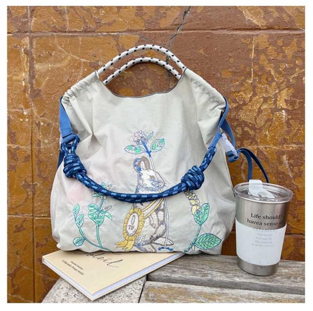 トートバッグ 刺繍 エコバッグ 肩掛け 手提げバッグ A4 軽量 ナイロン かわいい 刺繍バッグ 動物 猫 花柄 刺繍 大きめ 買い物 ショッピングバッグ おしゃれ サブバック 折りたたみ アニマル刺繍 トートバック 可愛い 鞄 プレゼント ギフト 通勤 送料無料