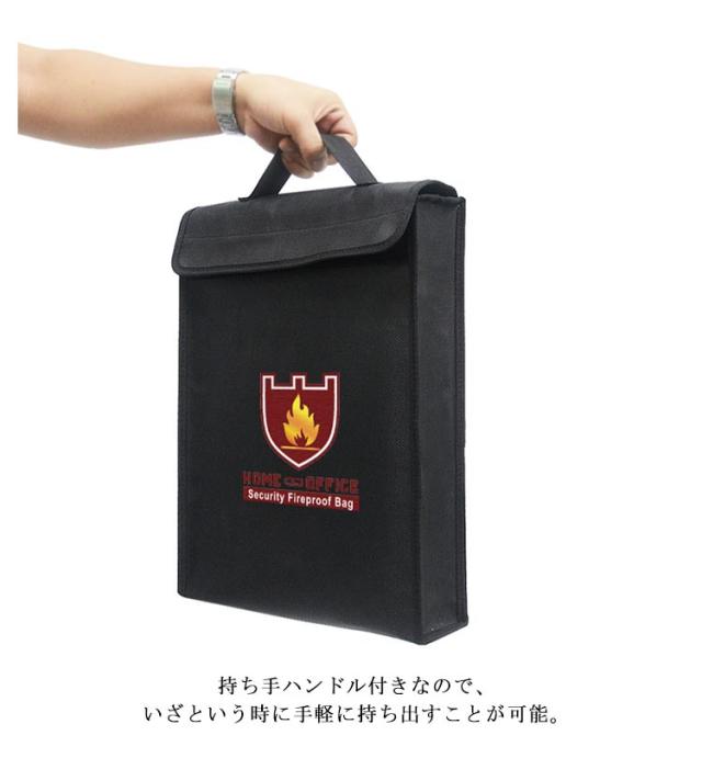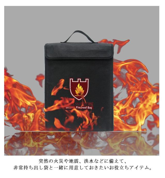 | ・万が一の火災から貴重品を守る「耐火収納バッグ」 ・大切な書類や通帳、印鑑等の保管に。 ・安心保管袋 ・持ち手ハンドル付きなので、いざという時に手軽に持ち出すことが可能。 ・突然の火災や地震、洪水などに備えて、非常持ち出し袋と一緒に用意しておきたいお役立ちアイテム。 | |