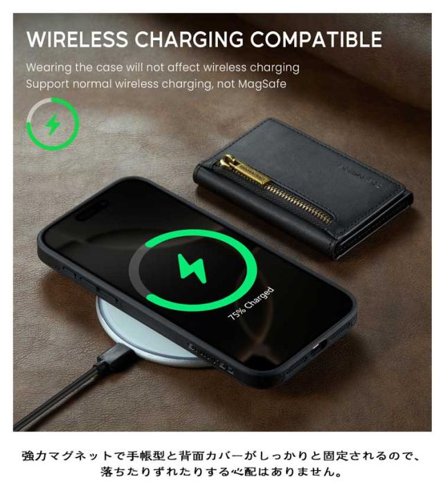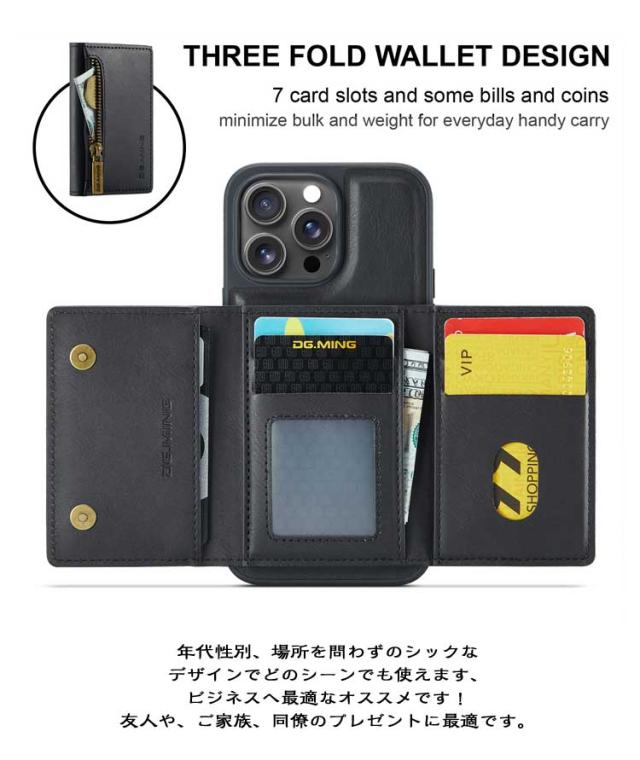 | マグネット式 スキミング防止 ワイヤレス充電対応 2in1分離可能手帳型ケース! iphone17/16/15/14/13 ・ 財布+手帳型ケースとしても、超薄型の背面カバー単体としてもご利用いただける2in 1 のスマホケース!気分や状況に合わせて使い分けられてとでも便利! ・5つのポケット付きのお財布ポーチは、小銭やお札、レシートなど分けて収納することができ便利です。※お札は折りたたんで収納して下さい。 ・手帳型ケースから取り外してカードケースとして使うことができます。キャッシュレス決済をしたり、通学・通勤の定期を入れるのに便利! ・強力マグネットで手帳型と背面カバーがしっかりと固定されるので、落ちたりずれたりする心配はありません。 ・背面カバーに磁性があるので、マグネット式車載ホルダーや冷蔵庫などの金属に取り付けて使用することができます。キッチンでご家事をやる時、またはお風呂にはいる時も楽に使用可能です。 ・高級感を溢れるデザイン、柔らかく上質素材を使って仕上がりケースです、御大切なスマホを傷やほこりから最高の保護です。 ・端末をホールドするフレーム部分はTPU素材を使用。柔軟性のある素材でケースの着脱もしやすく、耐久性を兼ね備えました。 ・ 横置きスタンド機能が付きまして、好きな角度を調節できて、手放しでも動画視聴や読書に楽しめる。 ・ カメラ部に、レンズの高さより少し段差を置いておき、大切なレンズとテーブルの接触を避けます。 ・ ケースの穴はスマホのスピーカー、カメラレンズ、充電口にピッタリします。スマホカバーを装着したままで、音量の調節、充電とカメラ撮影など全ての操作が自由に行えます。 ・ 年代性別、場所を問わずのシックなデザインでどのシーンでも使えます、ビジネスへ最適なオススメです!友人や、ご家族、同僚のプレゼントに最適です。 | |