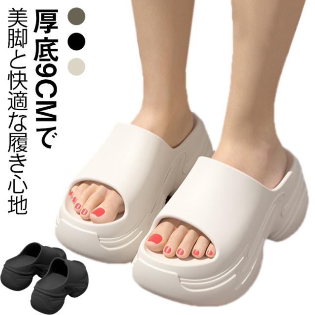 夏用 滑り止め レディース サンダル 厚底 EVA サンダル 長時間履ける 9cmヒール 防滑サンダル 春夏 デイリーサンダル 耐摩耗 無地 ルームサンダル 室内用 室外用 通気性 ビーチサンダル 履きやすい 足に優しい