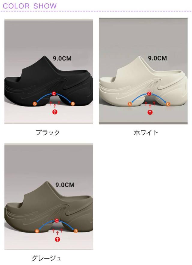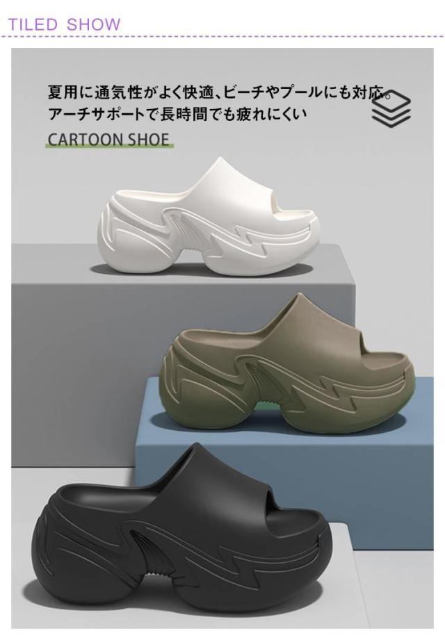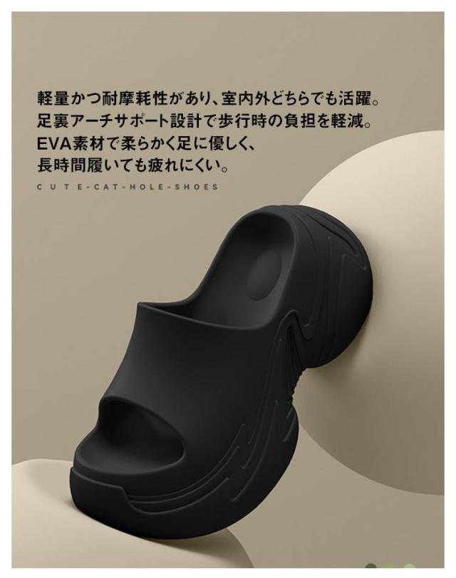 | 厚底9cmで美脚と快適な履き心地 アーチサポートで長時間でも疲れにくい EVA素材で柔らかく足に優しく、長時間履いても疲れにくい。 足裏アーチサポート設計で歩行時の負担を軽減。 シンプルな無地デザインで普段使いにも最適。 軽量かつ耐摩耗性があり、室内外どちらでも活躍。 夏用に通気性がよく快適、ビーチやプールにも対応。 柔らかくクッション性が高いので、足裏にかかる衝撃を吸収。 | |