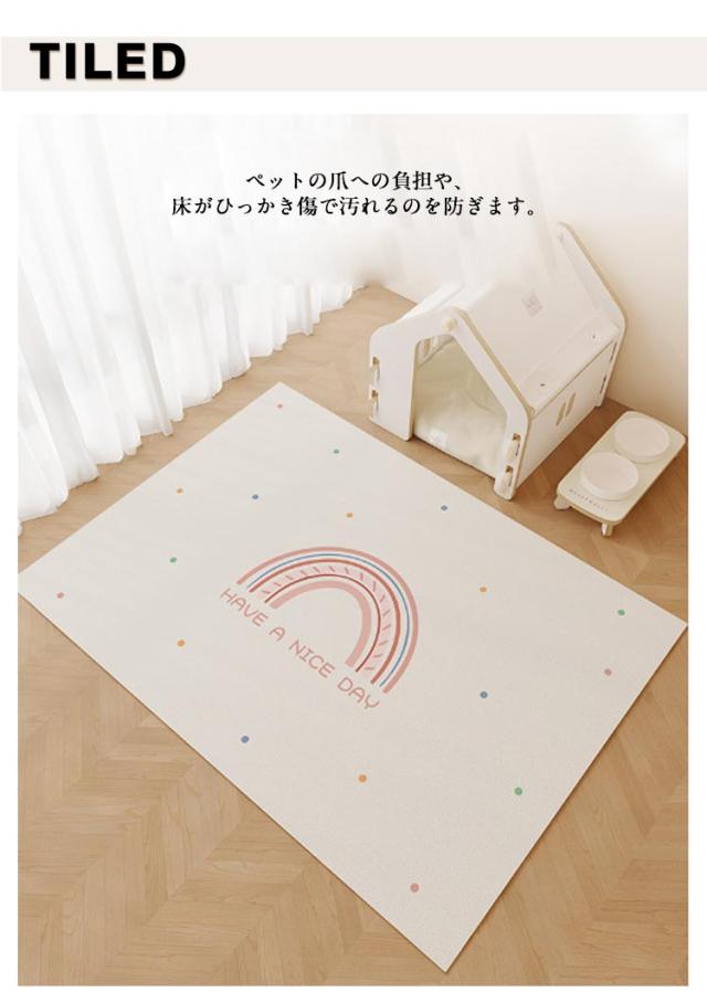 | ペットマット 防水 滑り止め 足腰の負担軽減 ●撥水加工済みで、汚れに強い、ふくだけ簡単お手入れ! ●元気に走り回っても滑りにくく、シニア犬の介護にもおすすめです。 ●厚さ3mmで、薄くて、ズレなく、つまずきにくいマットです。 ●ペットの爪への負担や、床がひっかき傷で汚れるのを防ぎます。 ●ハサミやカッターでサイズに合わせてカットできます。 | |