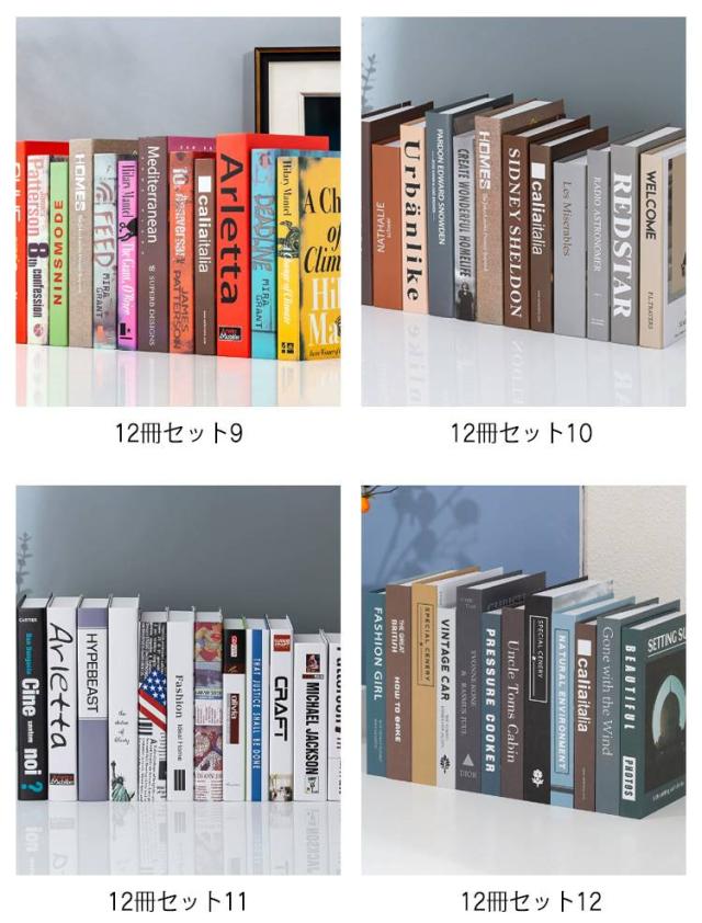 | ディスプレイブック12冊セット!お洒落な空間を演出するインテリアブック。 本棚に並べたりお部屋に飾るだけで、日常の空間がワンランクアップ、おしゃれな雰囲気になります。 軽くて、持ち運び簡単!中は空のボックスになっていて軽量なので、持ち運びも簡単。 リビングなどの自宅用、オフィスやカフェ、ホテルなどの装飾、モデルルームの商品ディスプレイや撮影の道具として。 もちろん玄関やリビング、寝室のインテリアとしても最適です。 12冊セットで置くだけで自宅やお店が、ラグジュアリーな空間に。 | |