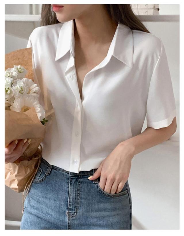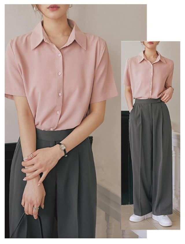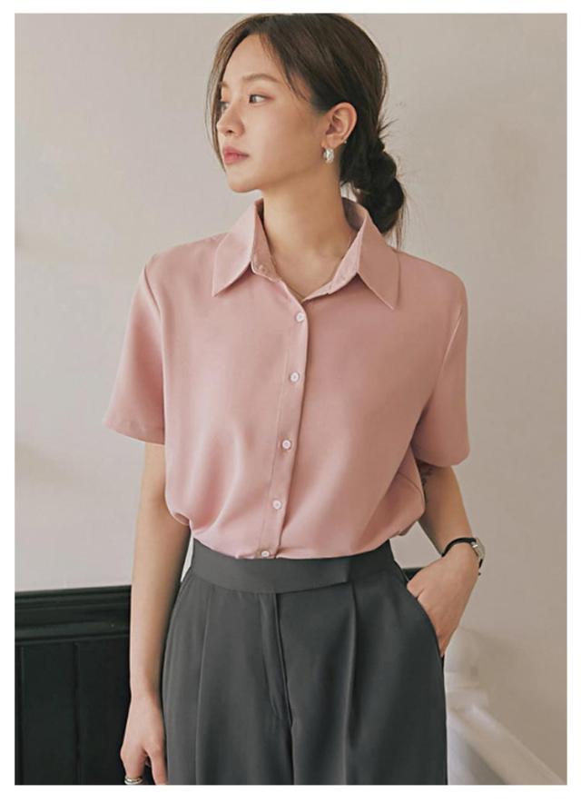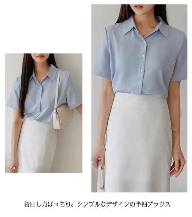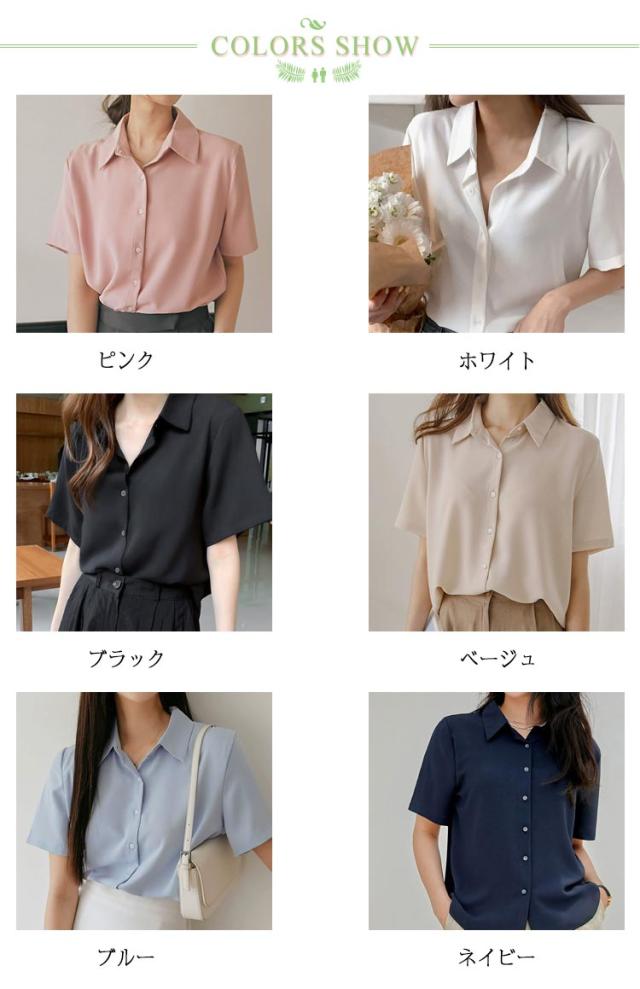 ブラウス レディース トップス ブラウス シャツ 半袖 事務服 おしゃれ yシャツ レギュラー 開襟 襟付き ブラウス ワイシャツ 半袖 前開き レギュラーカラー フェミニン オフィスカジュアル フォーマル 入学式 卒業式