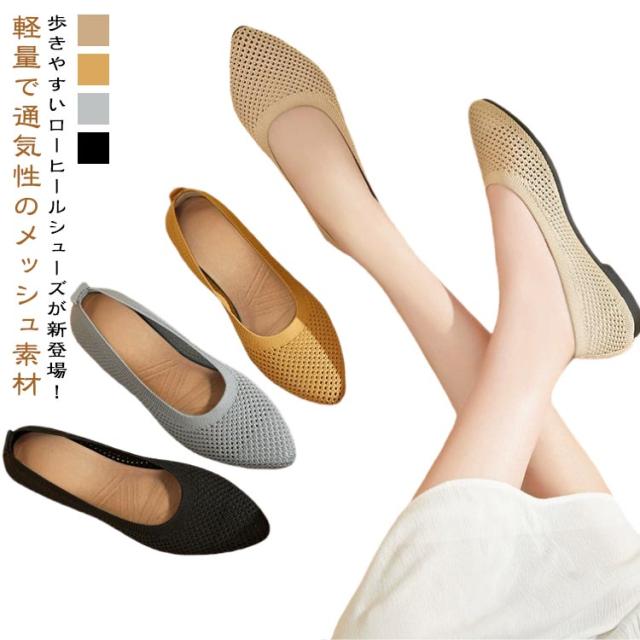 ニット パンプス 大きいサイズ フラットパンプス ポインテッドトゥ 痛くない レディース 走れる ぺたんこ ローヒール ニットパンプス フラット パンプス 通気性 軽量 靴 フラットシューズシューズ カジュアルシューズ おしゃれ ニットパンプス 母の日