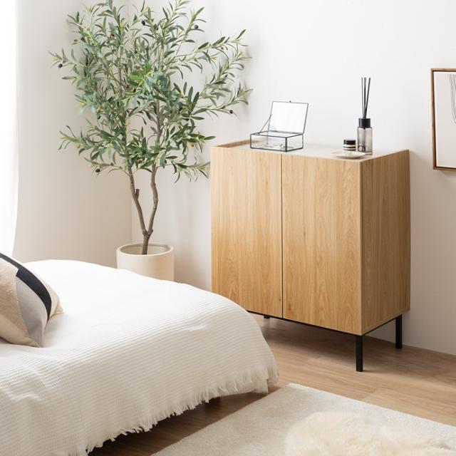 木目×無地のバイカラーが美しい、空間を彩るキャビネット。