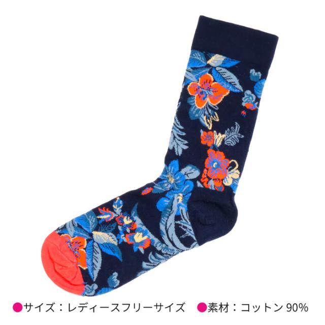 レディース ソックス ネイビー 花柄 | レディース ソックス レディースソックス 靴下 ハイクルー丈 女性用 ネイビー 柄物 かわいい くつした 女性 カラフル 綿 おしゃれ socks レッド プレゼント フラワー
