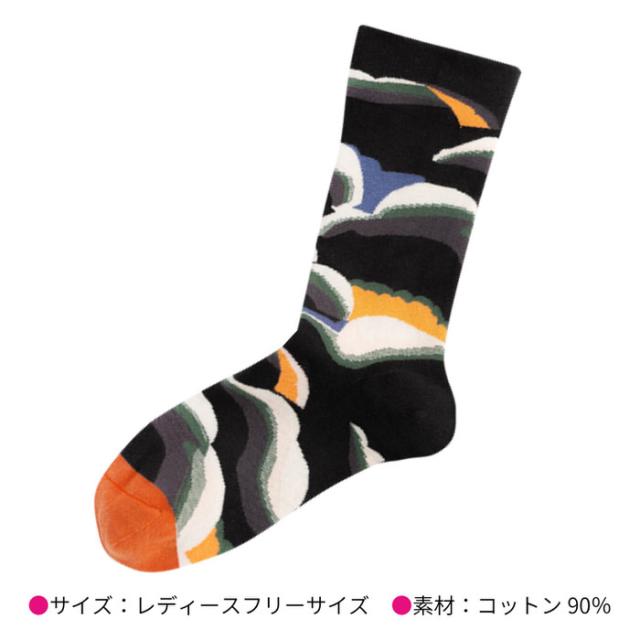 レディース ソックス ブラック 柄 | レディース ソックス レディースソックス 靴下 ハイクルー丈 女性用 ブラック 柄物 コットン くつした 女性 カラフル 綿 おしゃれ socks 黒 プレゼント 柄