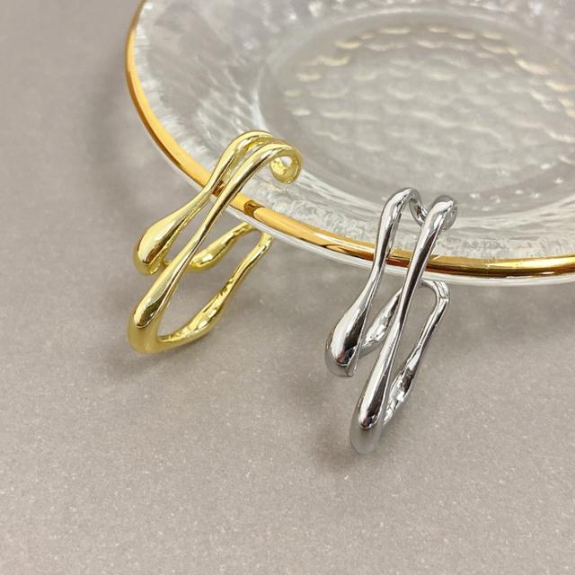 送料無料 ニュアンスダブルラインイヤーカフ 片耳用 変形 歪み レディース イヤーカフ イヤカフ イヤリング ノンホールピアス シルバー ゴールド メタル イヤークリップ 入学式 卒園式 結婚式
