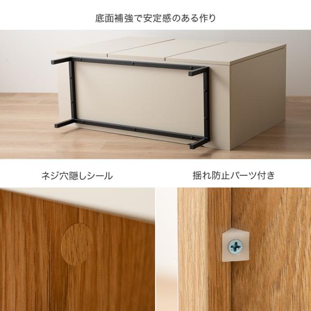 大容量収納と背面のコード穴で、ごちゃつきやすい小物類からA4サイズの書類、ルーターのコード類まで、すっきりまとめて収納可能です。